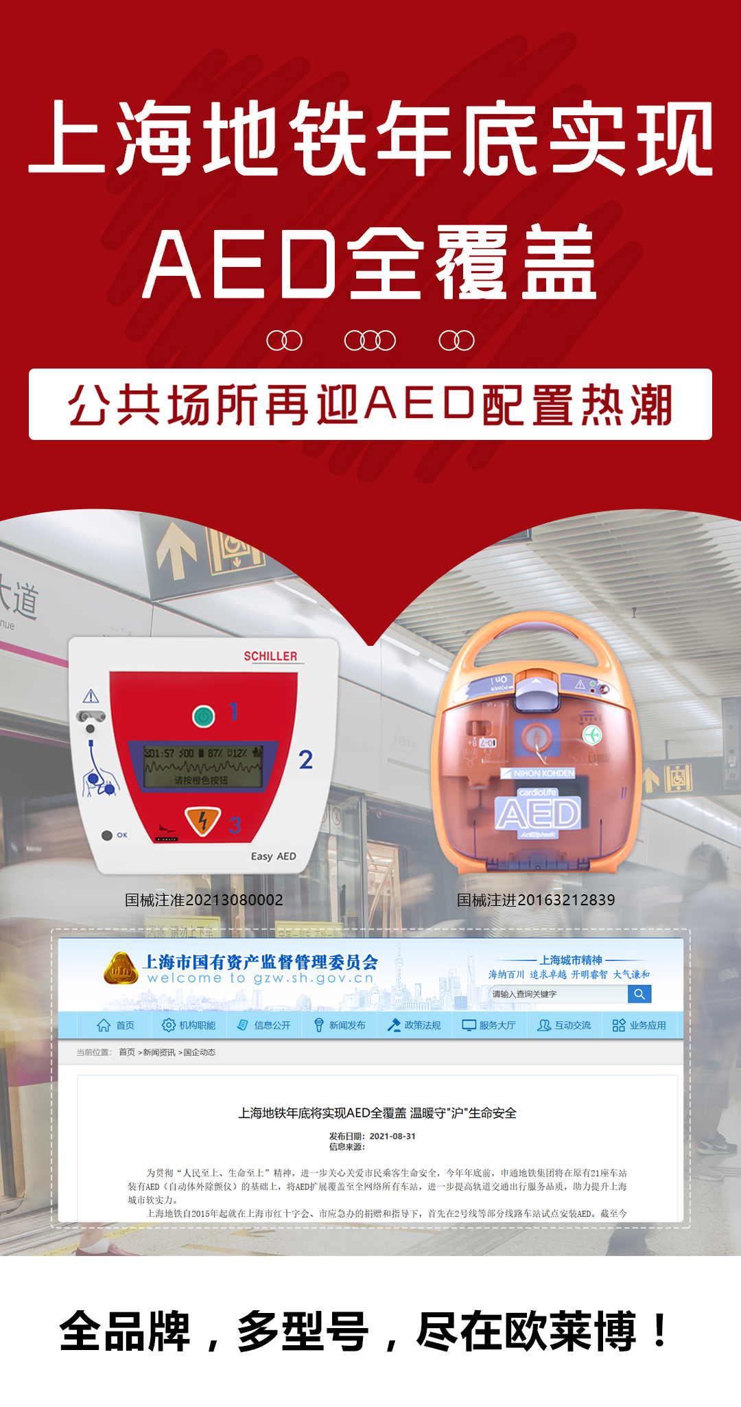又一公共场所迎AED配置热潮,上海地铁将于今年年底实现AED全覆盖!AED市场未来将迎爆发性增长。全品牌,多型号,尽在欧莱博!