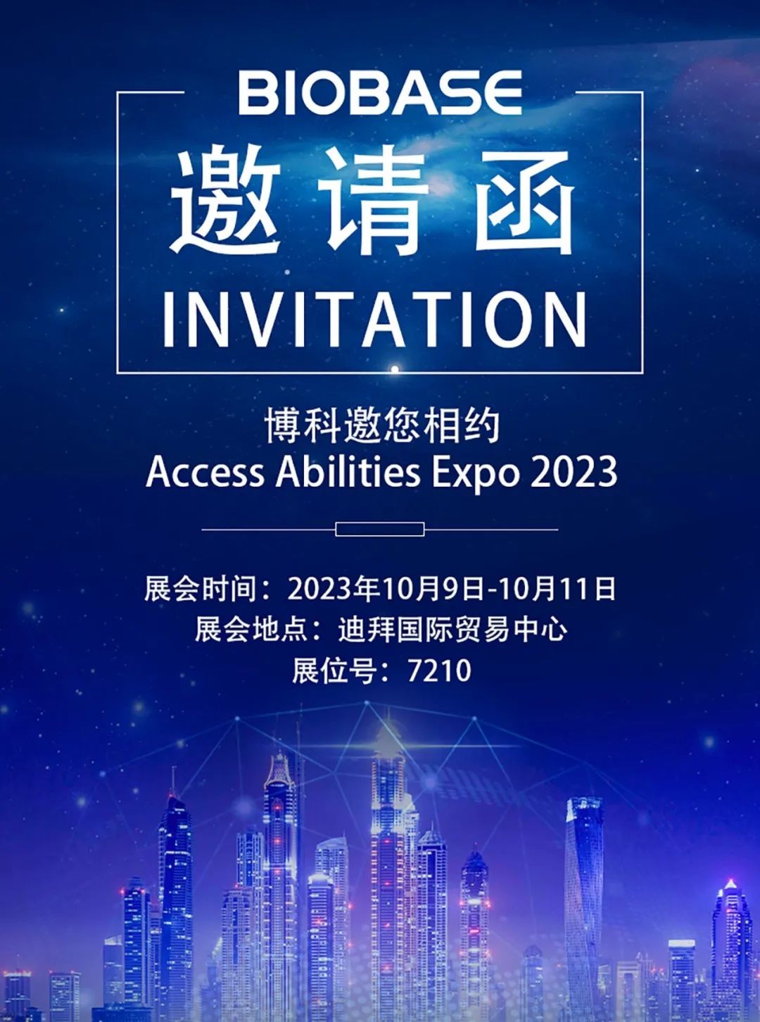 第五届中东迪拜残疾人康复医疗展览会将于2023年10月 9 日至 11 日在迪拜世界贸易中心 5、6 和 7 号展厅举行。BIOBASE将会在7210展位恭候您的到来。