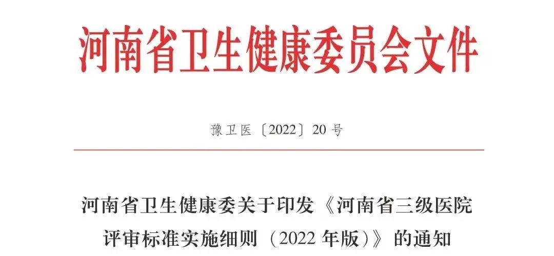 近日,河南省卫生健康委印发《河南省三级医院评审标准实施细则(2022 年版)》(以下简称《实施细则》),以进一步提高医院分级管理的科学化、规范化、标准化和精益化水平。本细则是省卫生健康委依据国家卫生健康委《三级医院评审标准(2020 年版)》和《三级医院评审标准(2020…