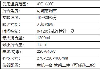 ●具备大容量同时混合及小样品旋转混合。设备参数